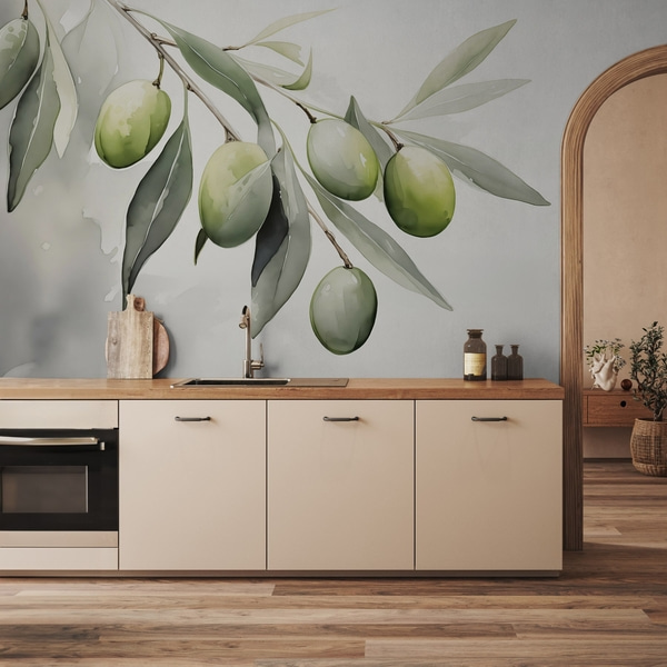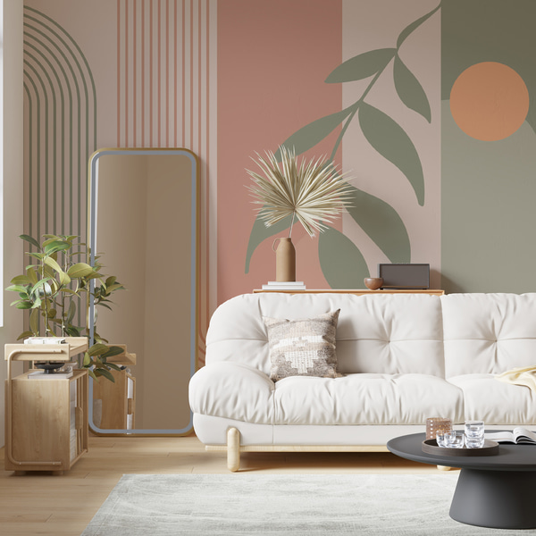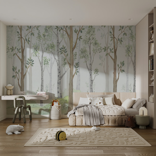 Peintures murales forêt aérienne de style aquarelle dans des tons beiges