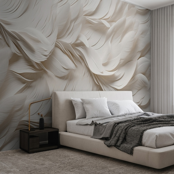 Peintures murales Grandes feuilles blanches texturées avec des nervures proéminentes, qui se chevauchent et créent de la profondeur.