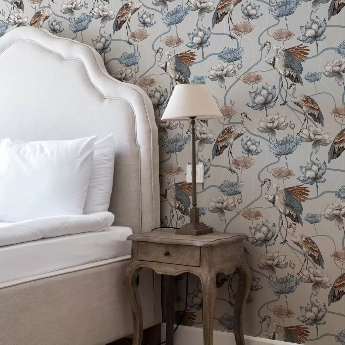 Papiers peints Composition avec grues et lotus dans des couleurs pastel Nr. a00064