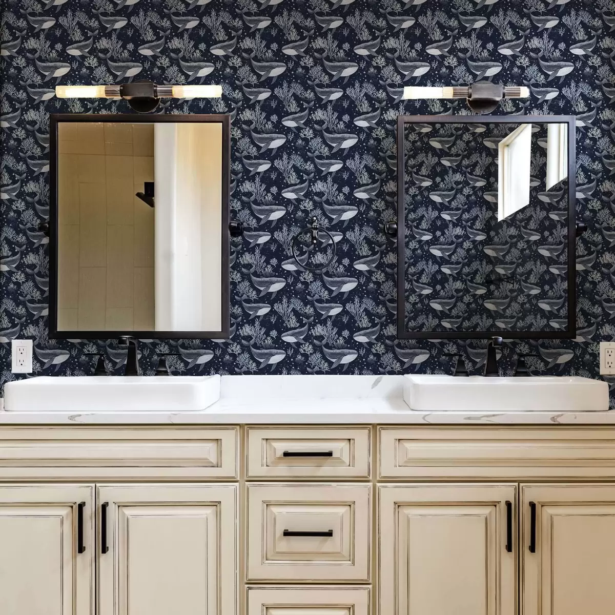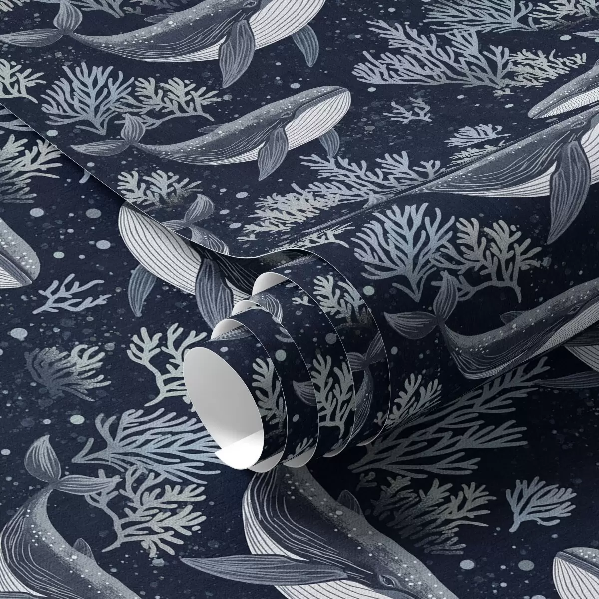 Papiers peints Baleines et coraux sur fond bleu foncé Nr. a00116v1