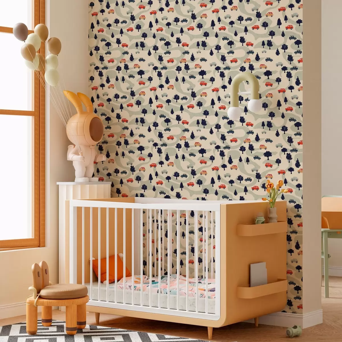 Papiers peints Funny cars parmi les arbres sur fond crème Nr. a00119