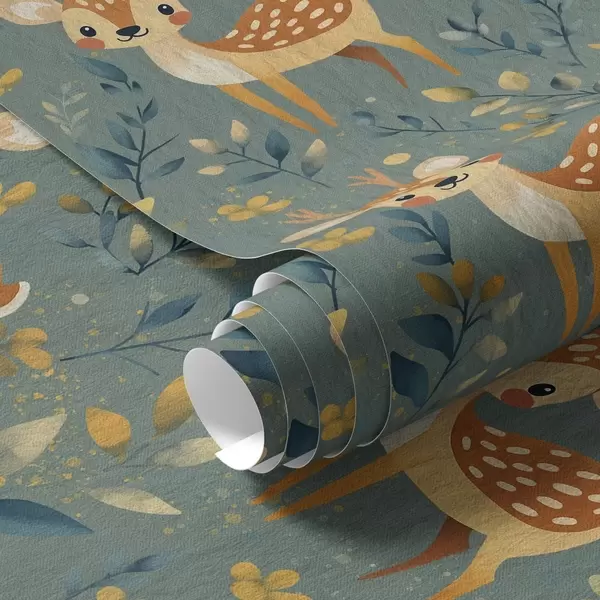 Papiers peints Bébé cerf dans la forêt avec des feuilles jaunes Nr. a00124v1