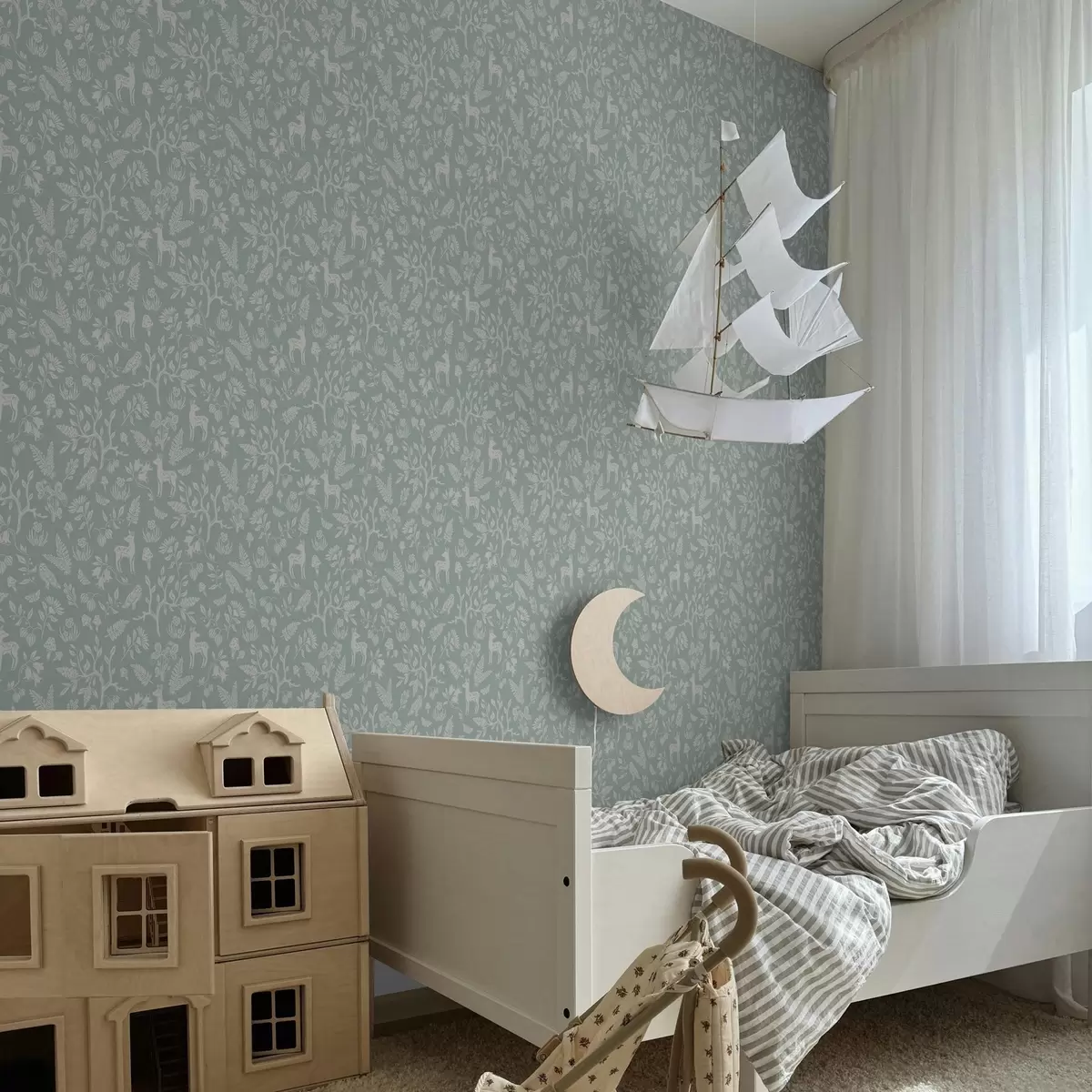 Papiers peints Animaux et plantes scandinaves sur fond de menthe Nr. a00149