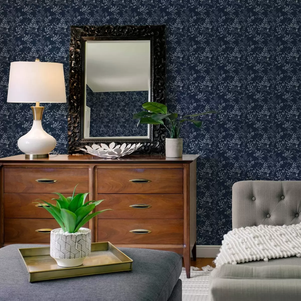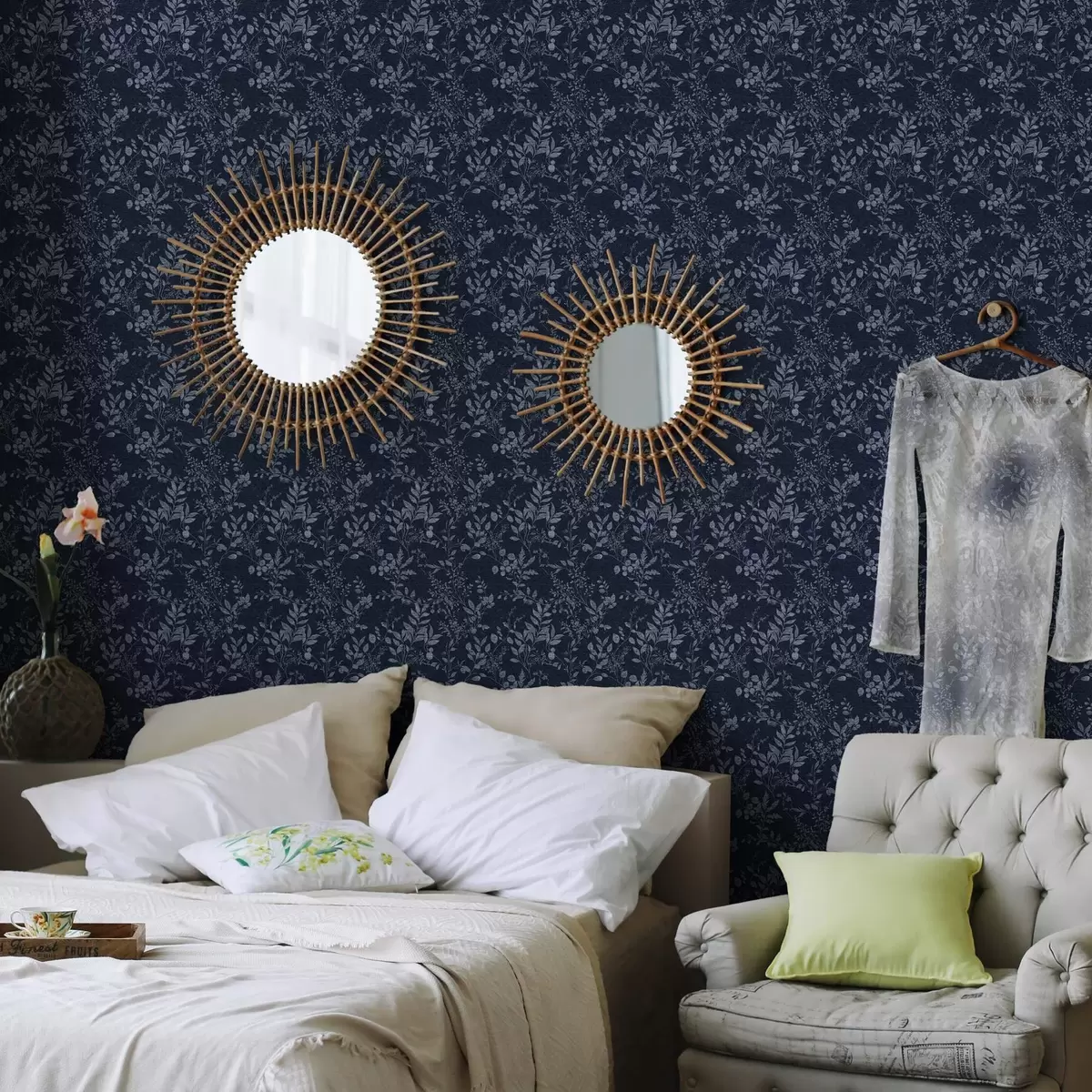 Papiers peints Imprimé botanique clair sur fond sombre Nr. a00166