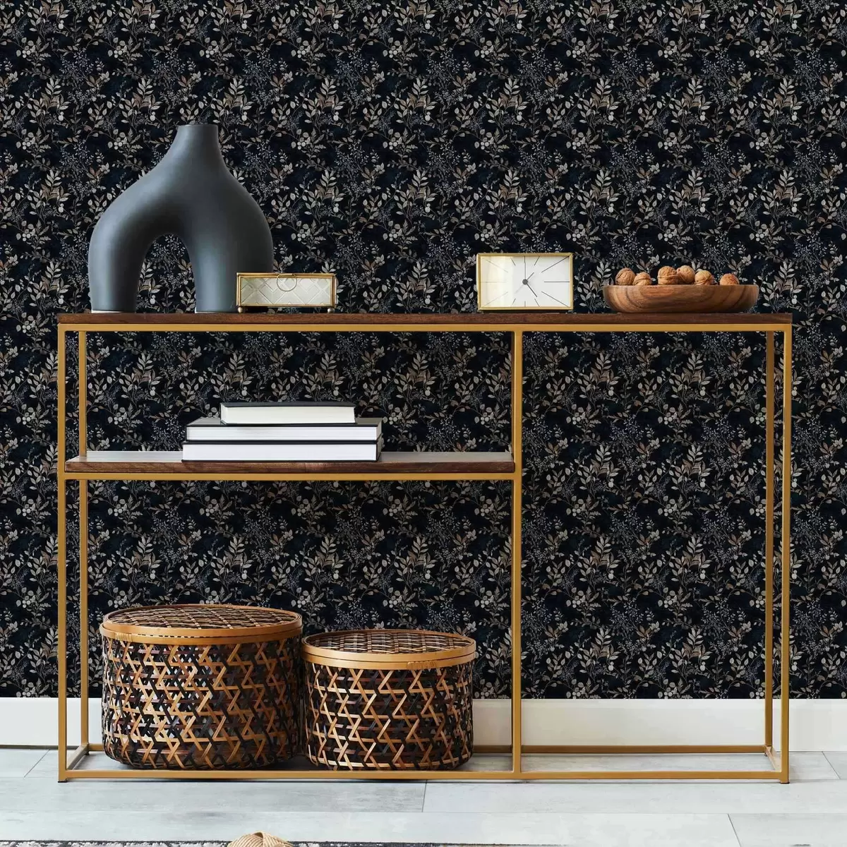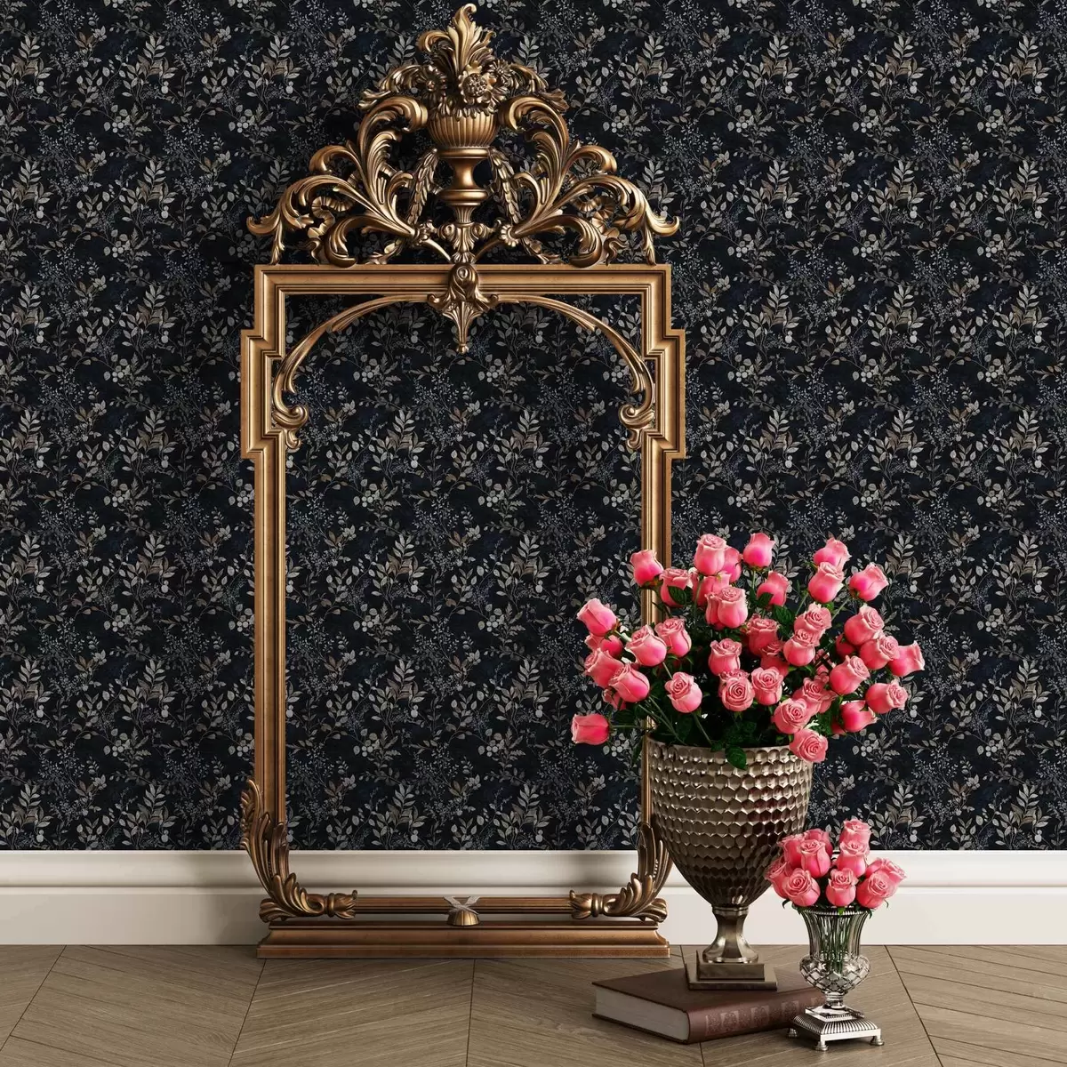 Papiers peints Imprimé floral classique en couleurs claires sur fond sombre Nr. a00166v2