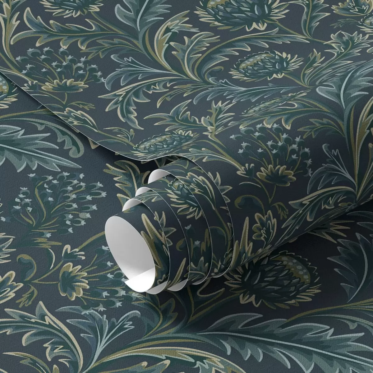 Papiers peints Motif floral vert foncé avec artichauts Nr. a00186