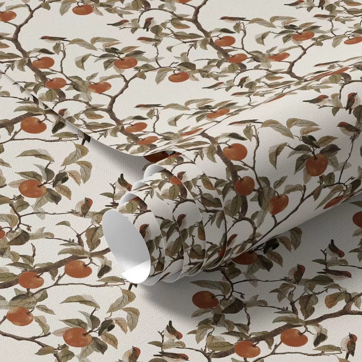 Papiers peints Oiseaux et oranges sur des branches, botanique vintage Nr. a00208