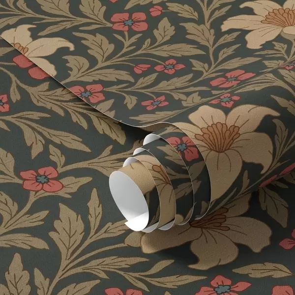 Papiers peints Fond sombre avec des fleurs jaunes et rouges dans le style Art nouveau Nr. a00293