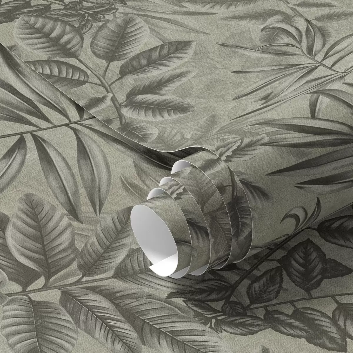 Papiers peints Feuilles tropicales grises de différentes formes sur un fond vintage Nr. a00297
