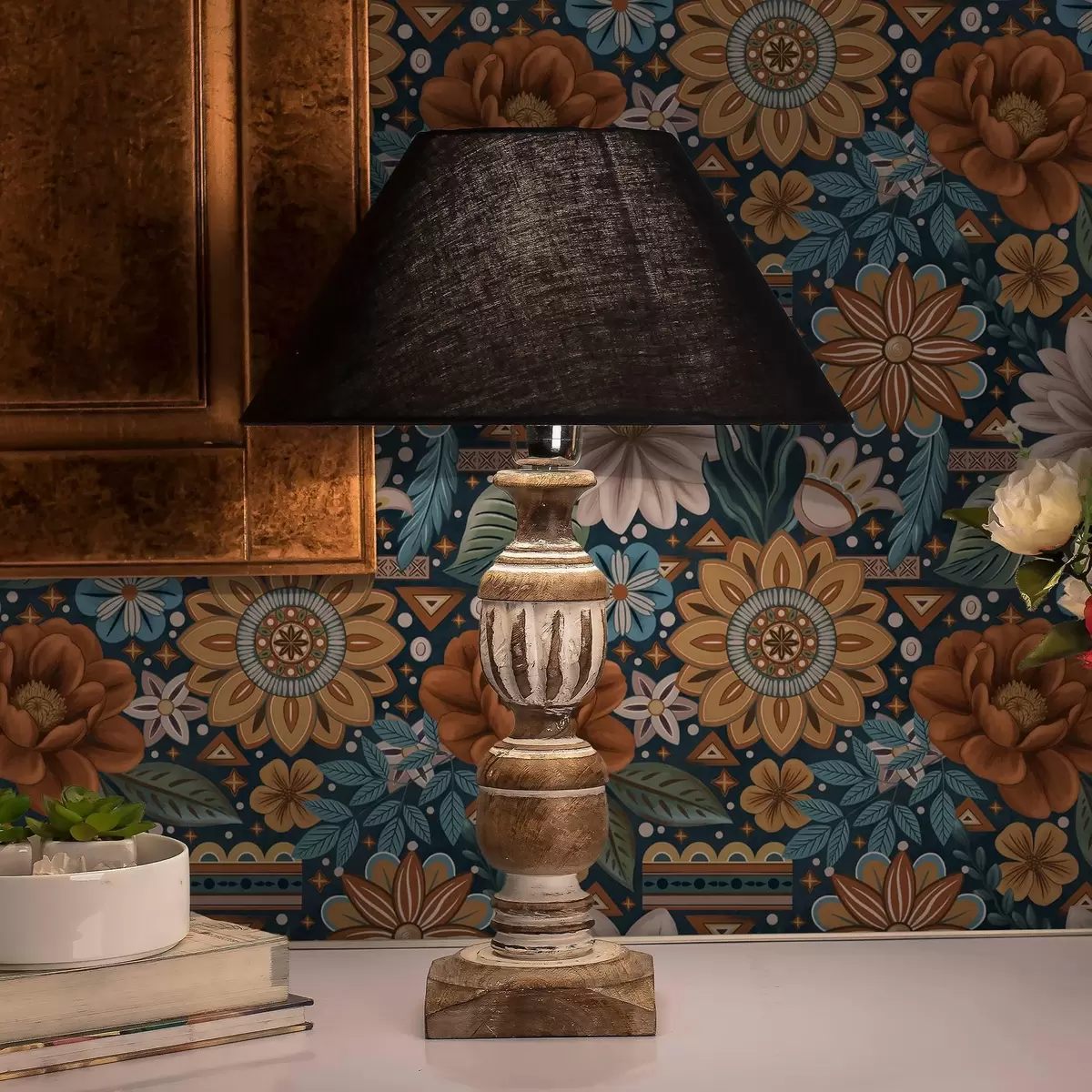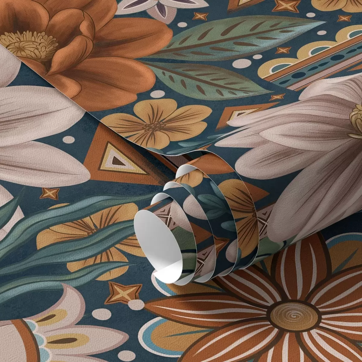 Papiers peints Fleurs décoratives lumineuses avec éléments géométriques Nr. a00305
