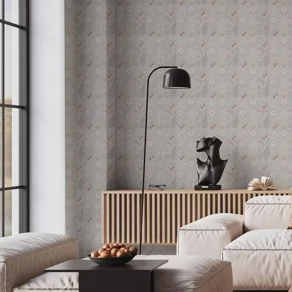 Papiers peints Fleurs et baies pastel sur fond gris clair Nr. a00406