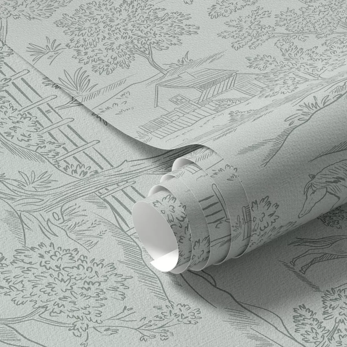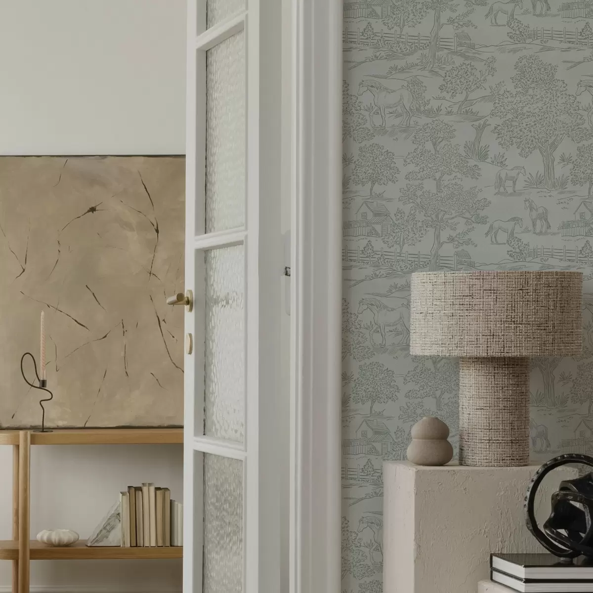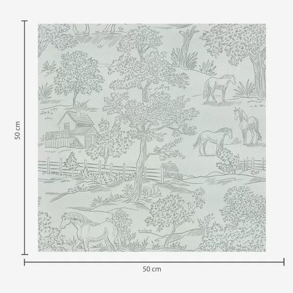 Papiers peints Paysage monochrome vert avec chevaux et chalets Nr. a00407