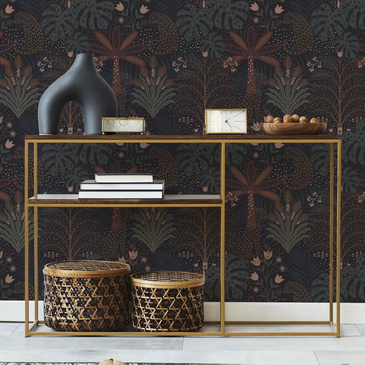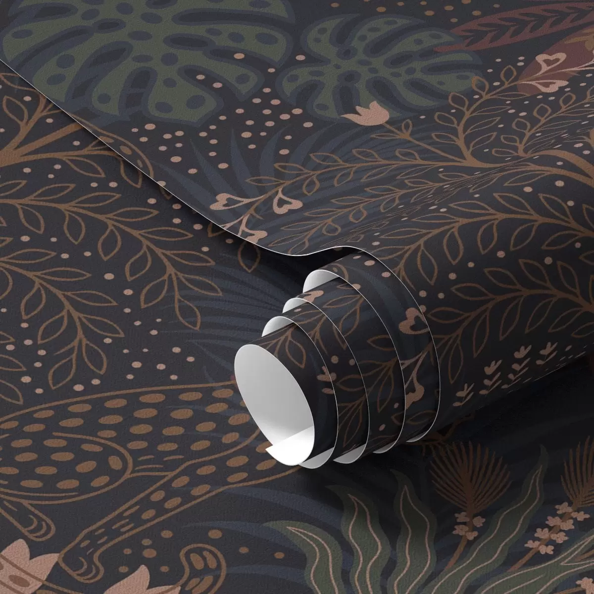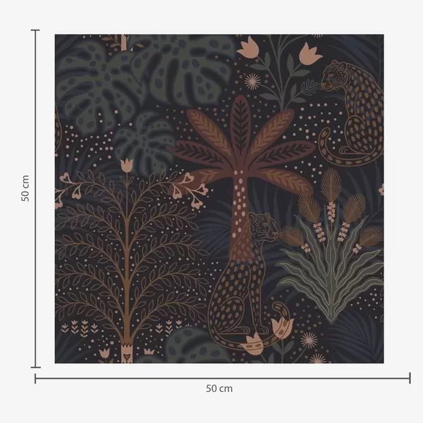 Papiers peints Jungle sombre avec léopards, palmiers et fleurs Nr. a00424