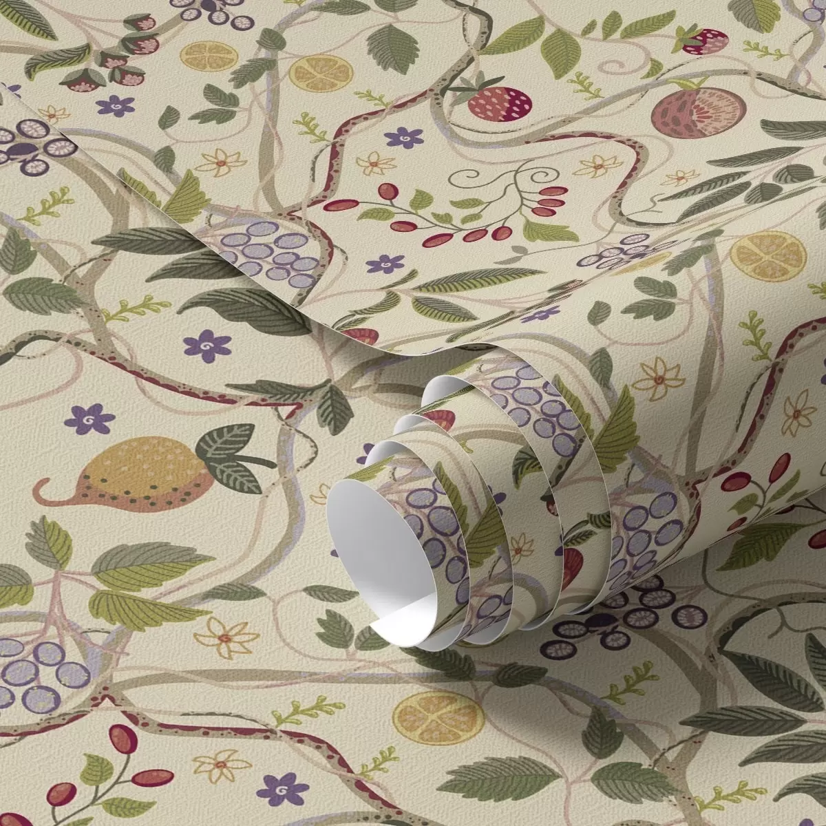 Papiers peints Motif de fruits avec baies, branches et fleurs Nr. a00428