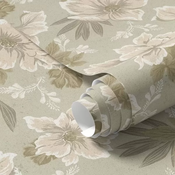 Papiers peints Fleurs crème sur fond vert olive Nr. a00462