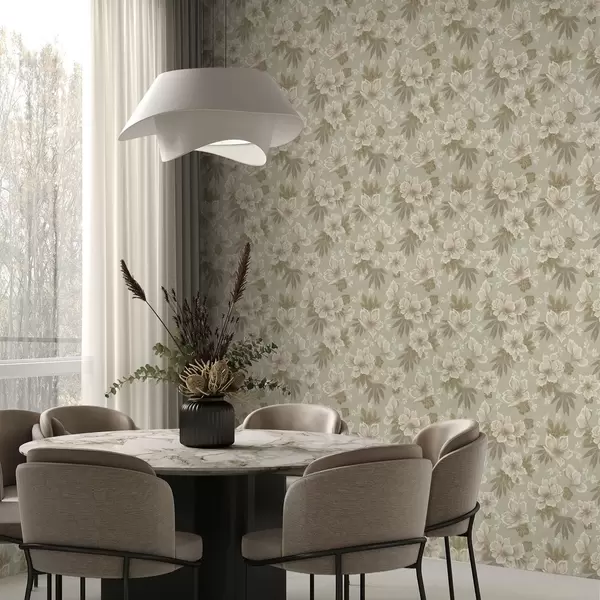 Papiers peints Fleurs crème sur fond vert olive Nr. a00462
