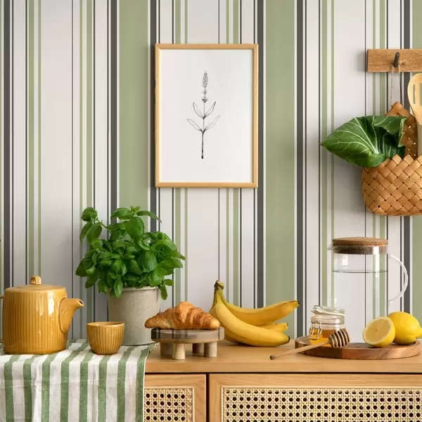 Papiers peints Fond blanc avec un mélange de rayures vertes et noires Nr. a00520