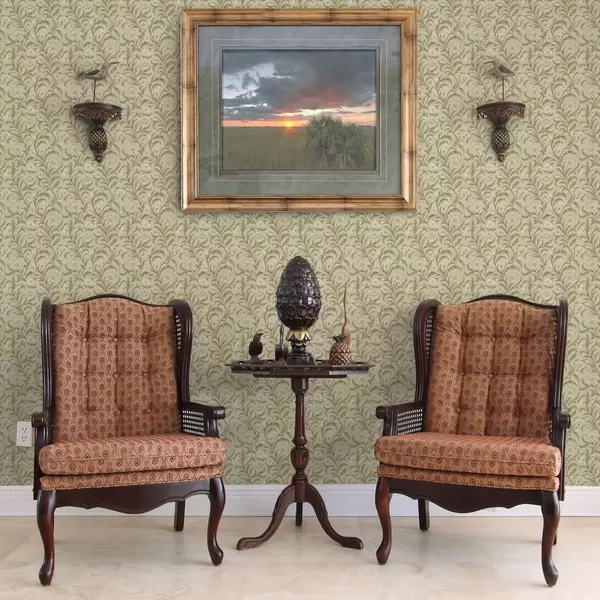 Papiers peints Ornement vintage avec volutes et fleurs, beige et olive Nr. a00574