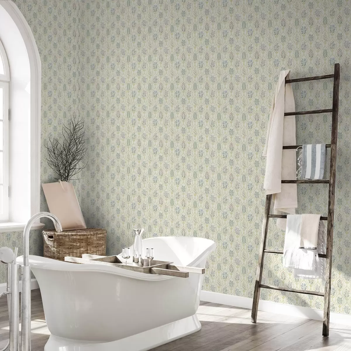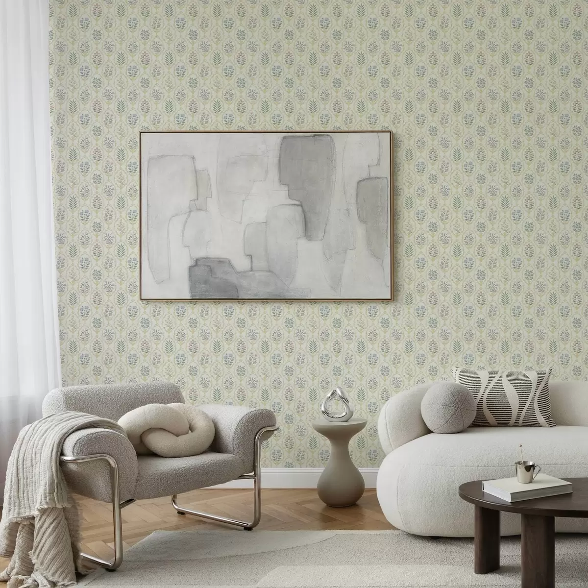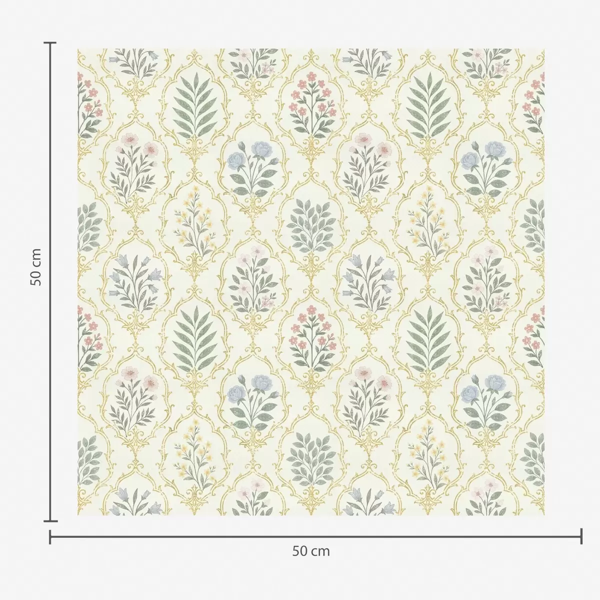 Papiers peints Médaillons botaniques dans un treillis, tons pastel Nr. a00579