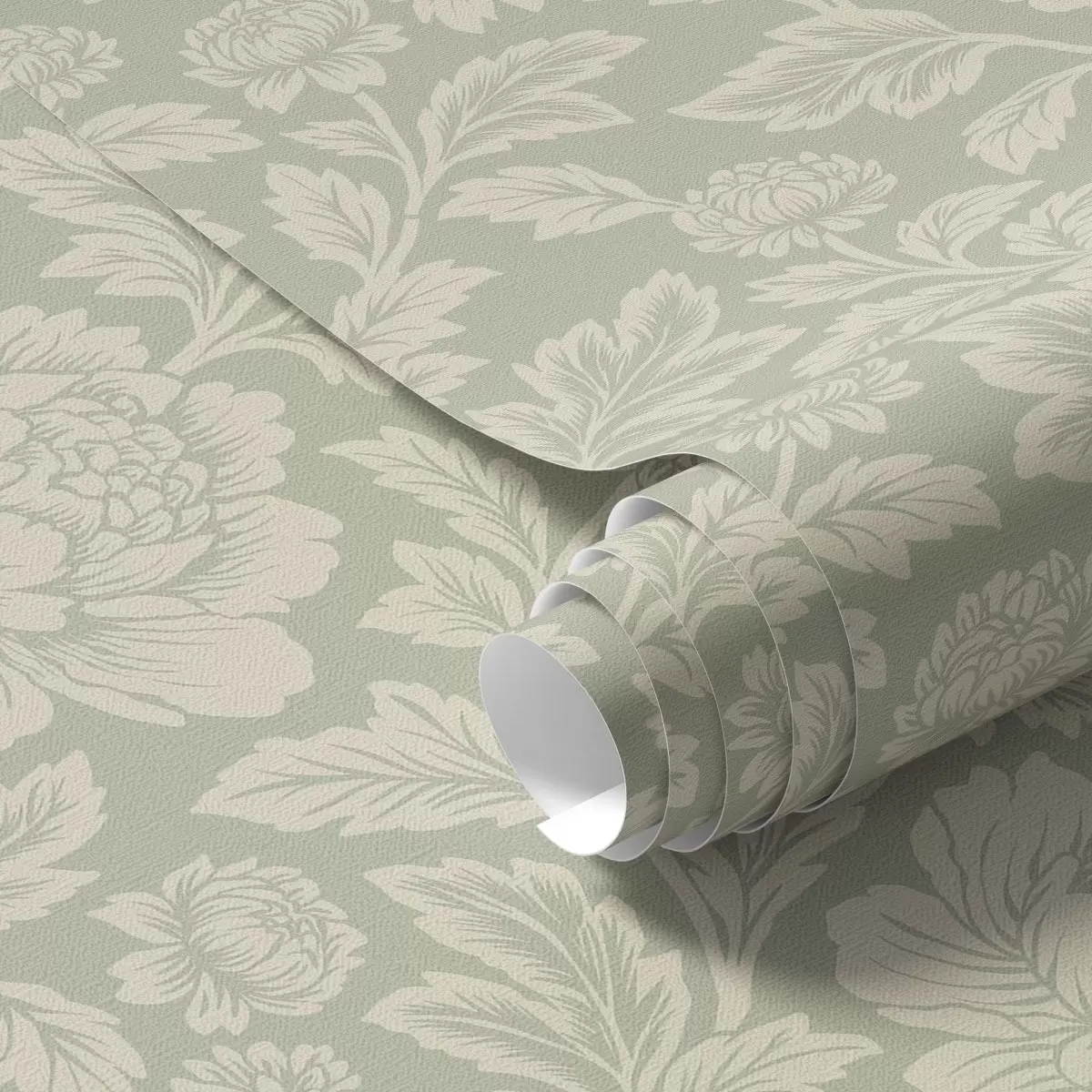 Papiers peints Grandes pivoines dessinées au trait sur fond sauge Nr. a00582