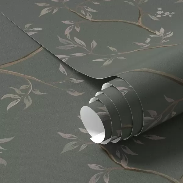 Papiers peints Branches feuillues délicates sur fond vert foncé Nr. a00597