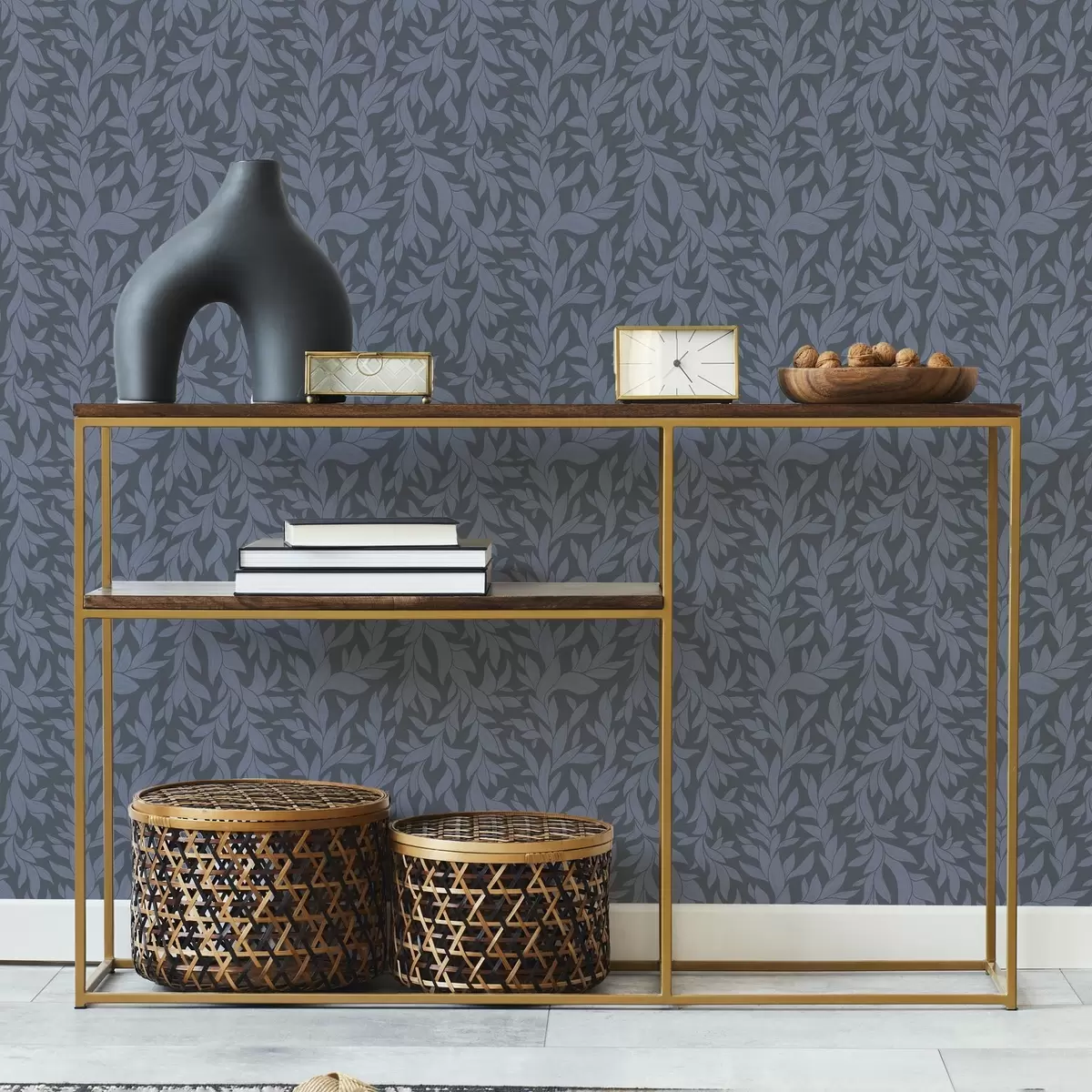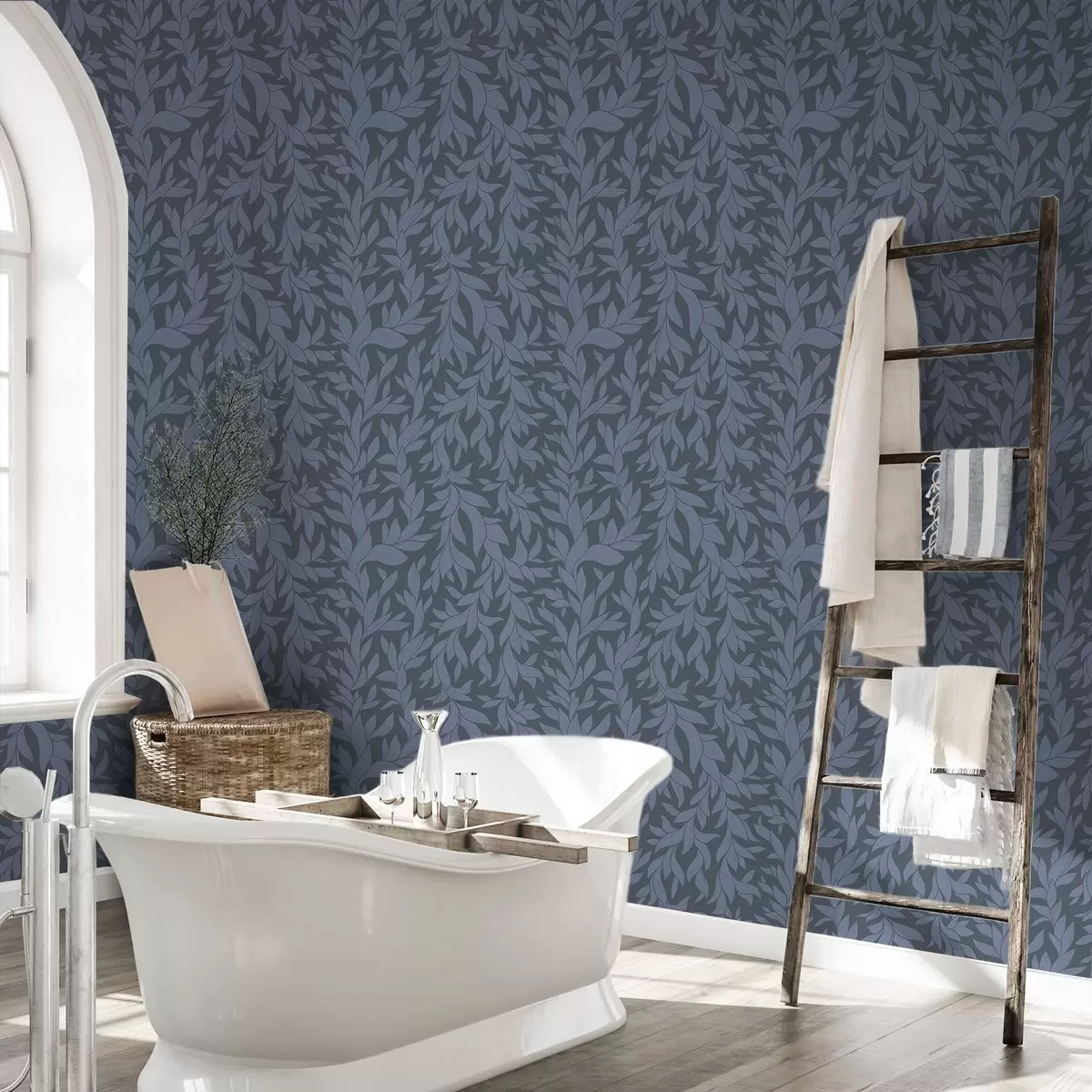 Papiers peints Fond bleu graphite et feuilles bleues, trait texturé Nr. a00616v2