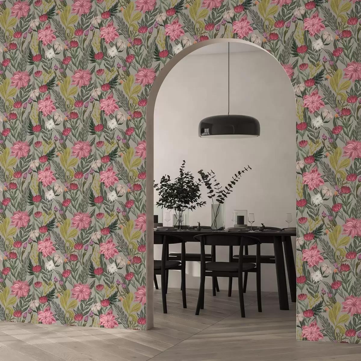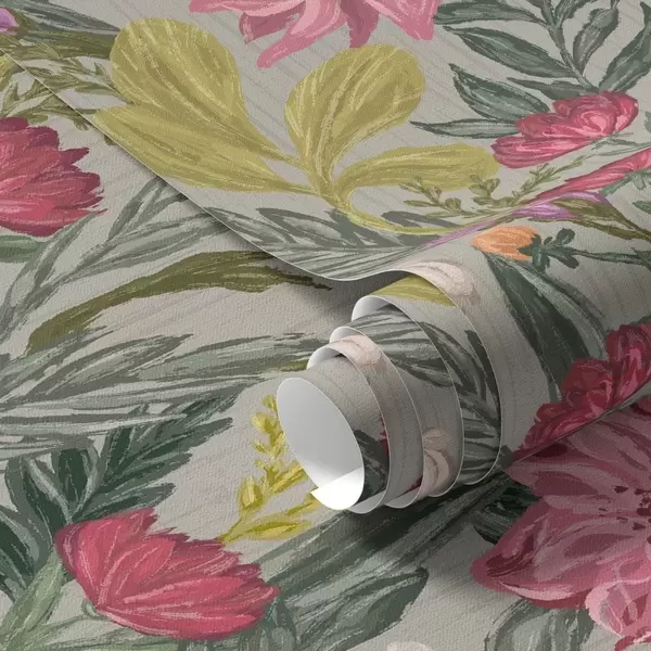 Papiers peints Fleurs roses et crème luxuriantes sur fond gris, texture impasto Nr. a00629