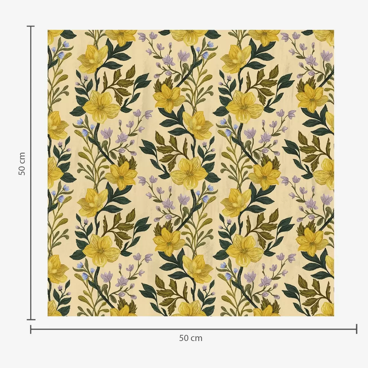 Papiers peints Fleurs jaunes disposées en guirlandes verticales sur fond crème Nr. a00632