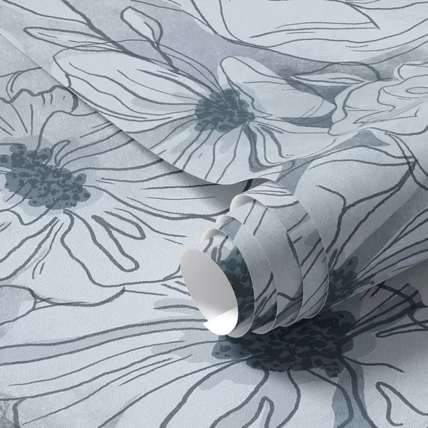 Papiers peints Fleurs linéaires dans une palette gris-bleu froide Nr. a00636v2