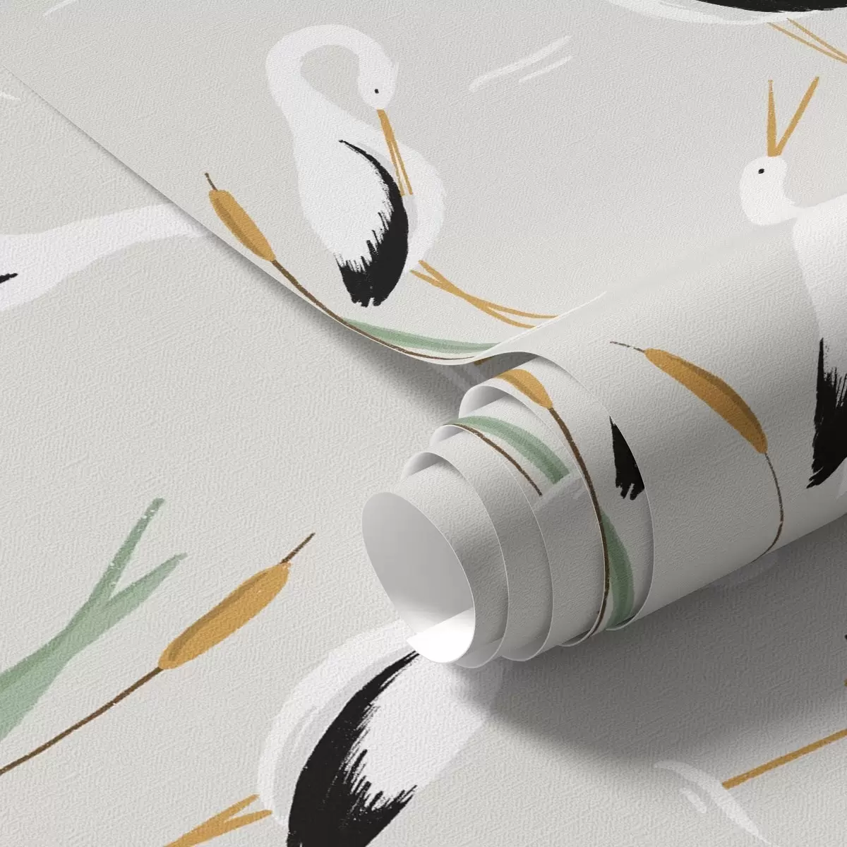 Papiers peints Hérons parmi les roseaux sur fond gris clair Nr. a00650