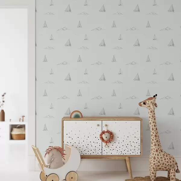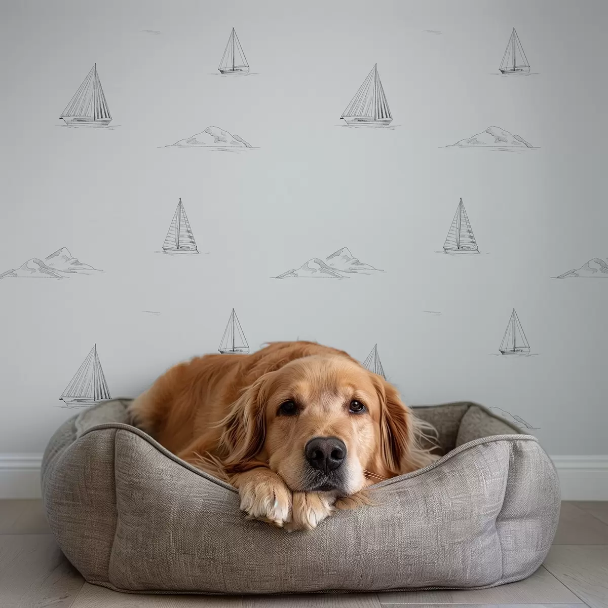 Papiers peints Esquissez des yachts et des îles, sur fond bleu-gris frais Nr. a00654