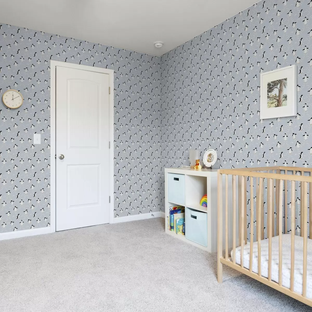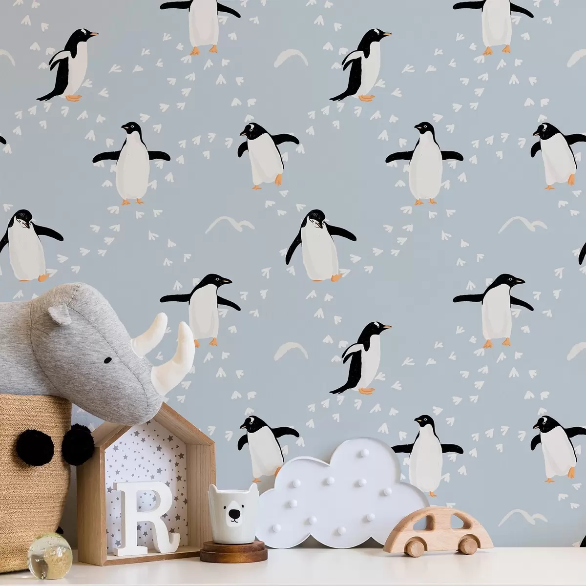 Papiers peints Pingouins sur fond bleu clair, rythme des empreintes Nr. a00655v2
