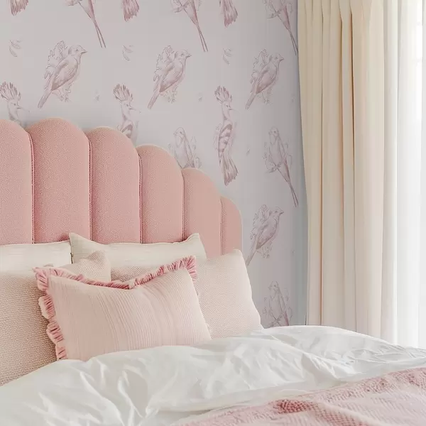 Papiers peints Toile d'oiseaux : croquis d'oiseaux, fond rose pâle Nr. a00656