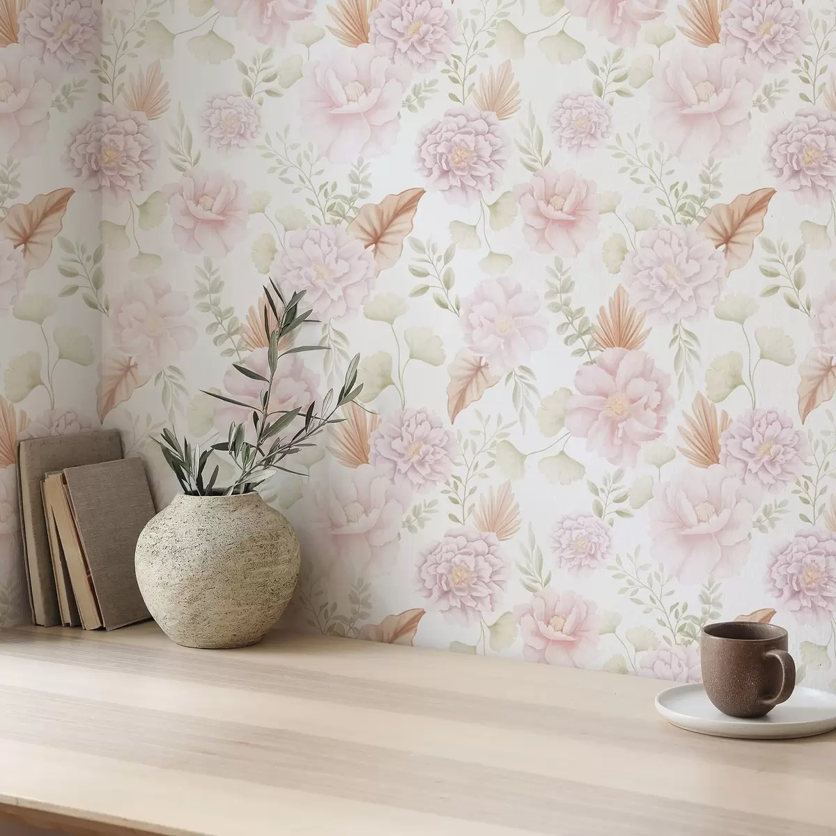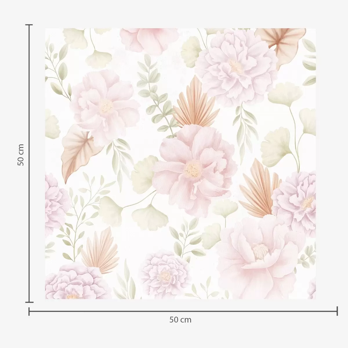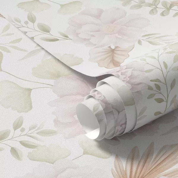 Papiers peints Pivoines et feuillage aux couleurs pastel douces sur fond blanc Nr. a00669