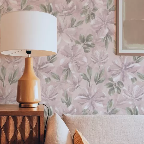 Papiers peints Fleurs roses aux feuilles délicates sur un fond doux Nr. a00675