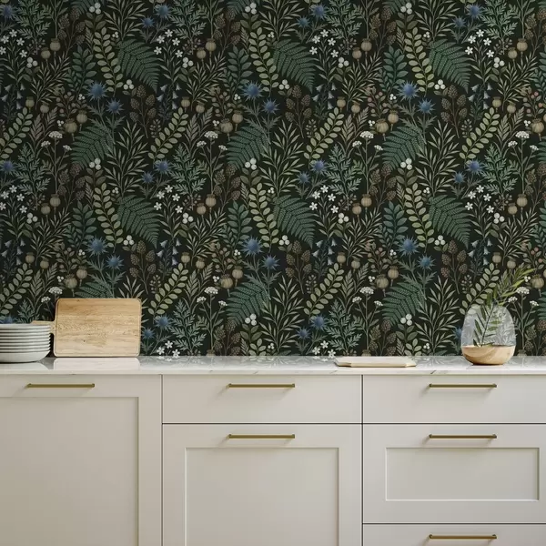 Papier peint Herbes des champs, baies et graines sur fond sombre a00706