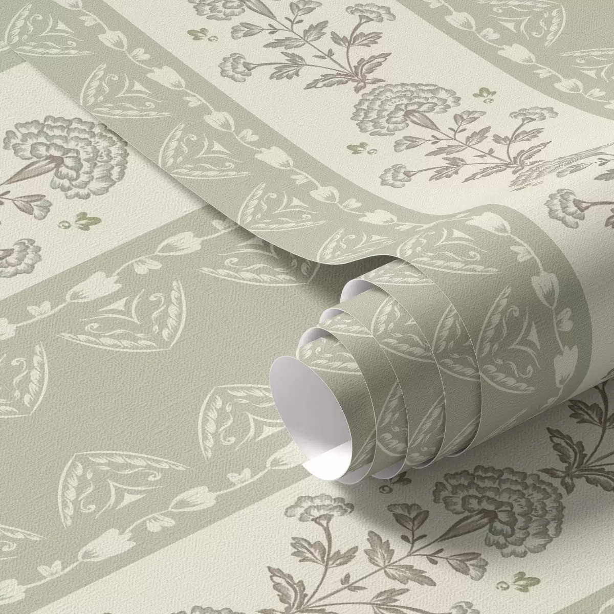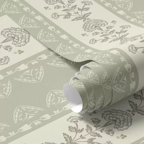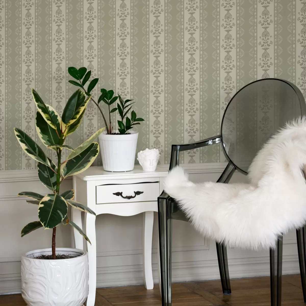 Papiers peints Ornement rayé avec colonnes florales dans les tons sauge Nr. a00719