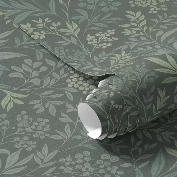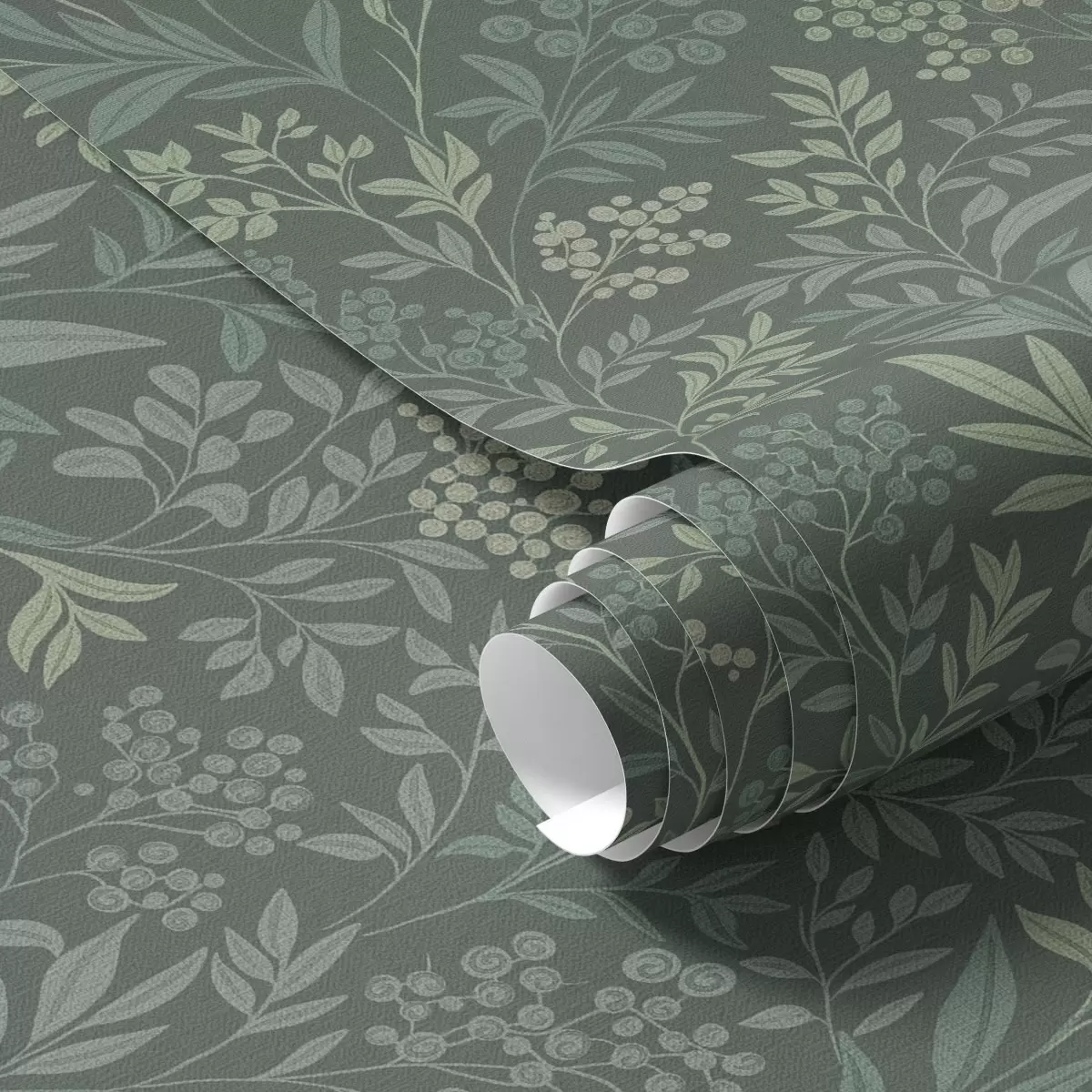 Papiers peints Herbes et baies émeraude, motif botanique raffiné Nr. a00740