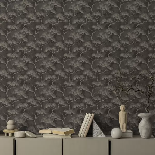 Papiers peints Silhouettes de pins sur fond sombre, texture brumeuse Nr. a00742