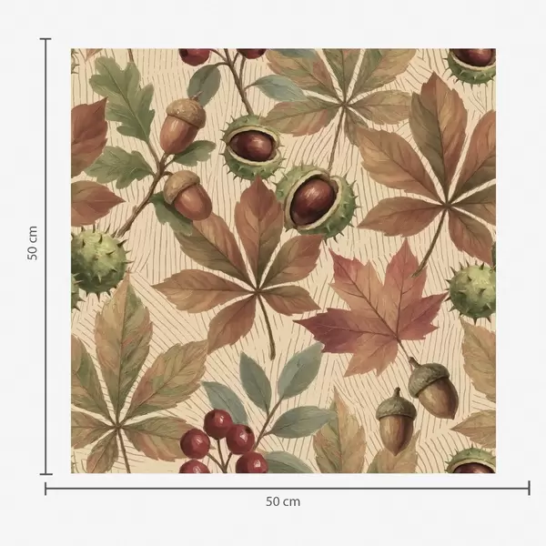 Papiers peints Feuilles d'automne, glands et baies sur fond beige Nr. a00754