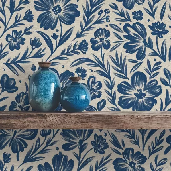 Papiers peints Ornement floral bleu avec papillons Nr. a00758