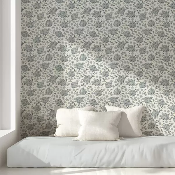 Papiers peints Fleurs et feuilles touffues dans une palette gris-bleu Nr. a00778