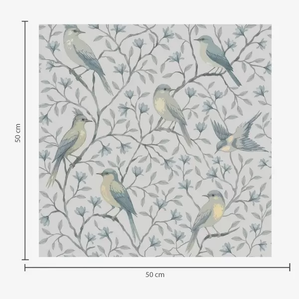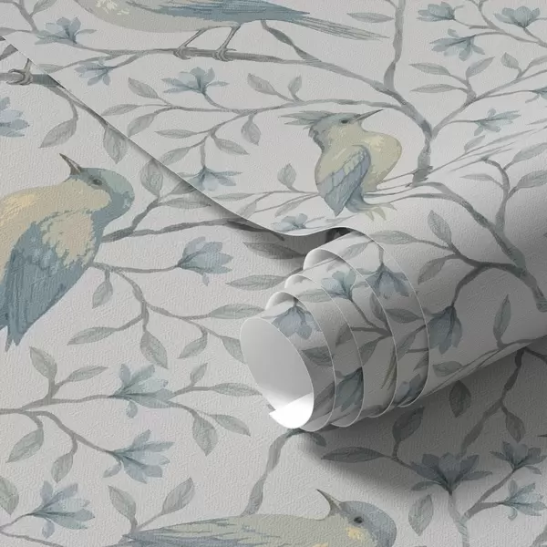 Papiers peints Oiseaux sur des branches, palette gris-bleu Nr. a00782