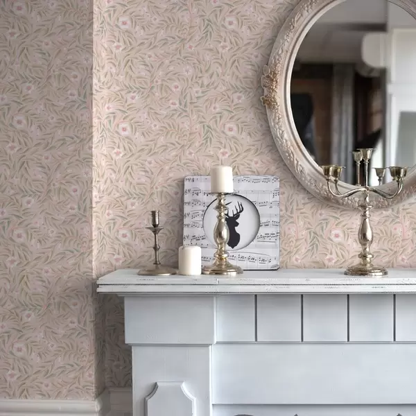 Papiers peints Fleurs roses délicates et feuilles douces sur fond pastel Nr. a00788
