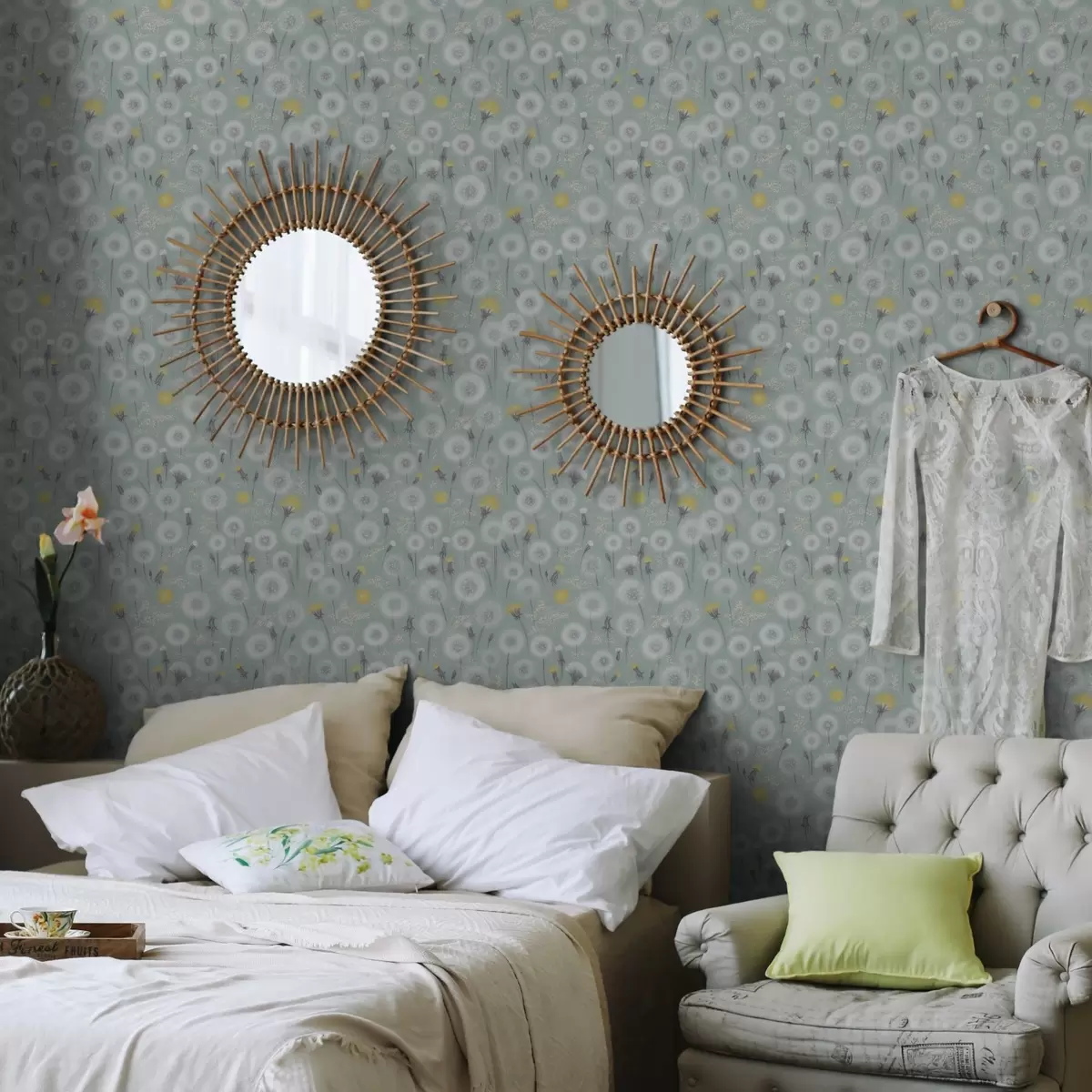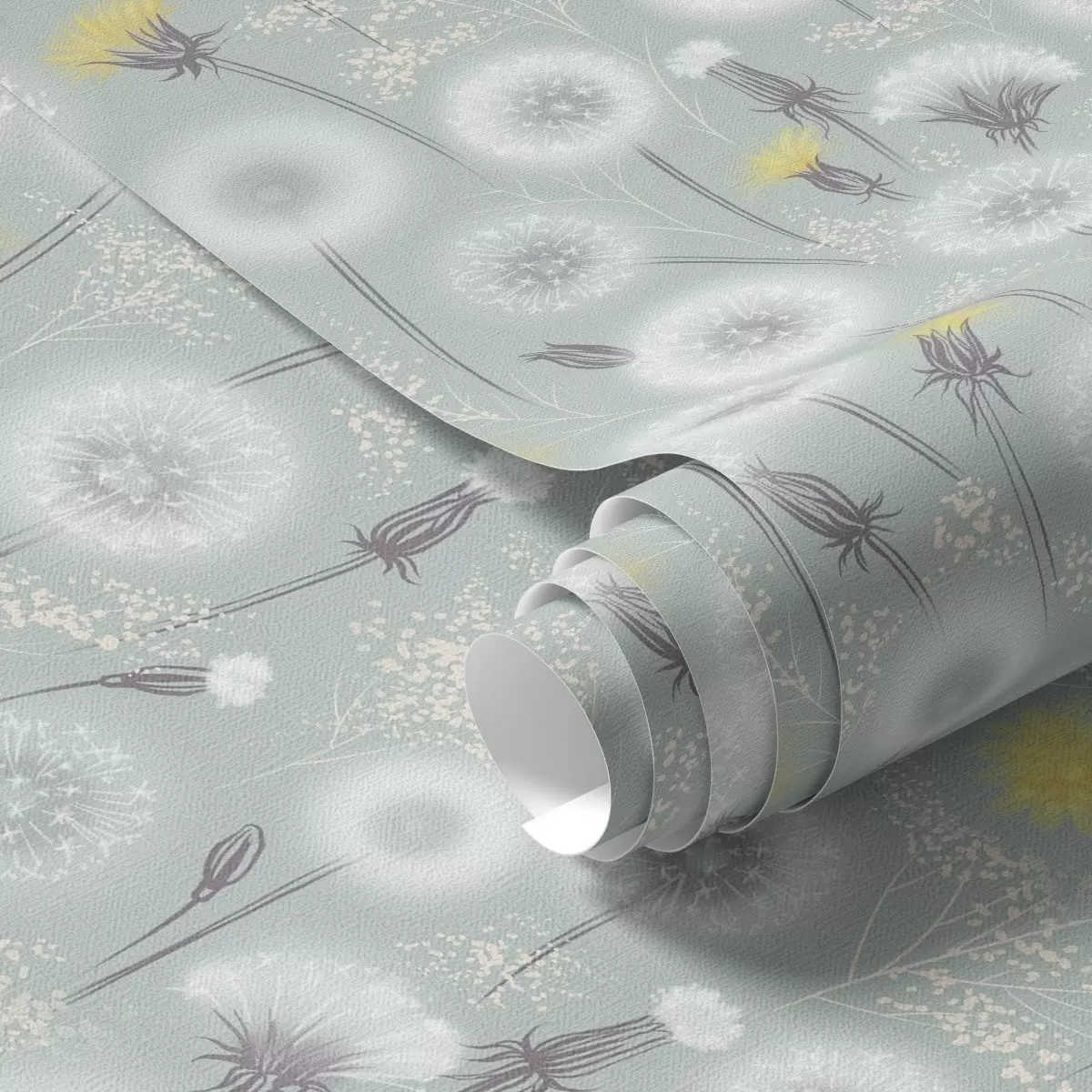 Papiers peints Pissenlits duveteux et graines sur fond menthe Nr. a00790