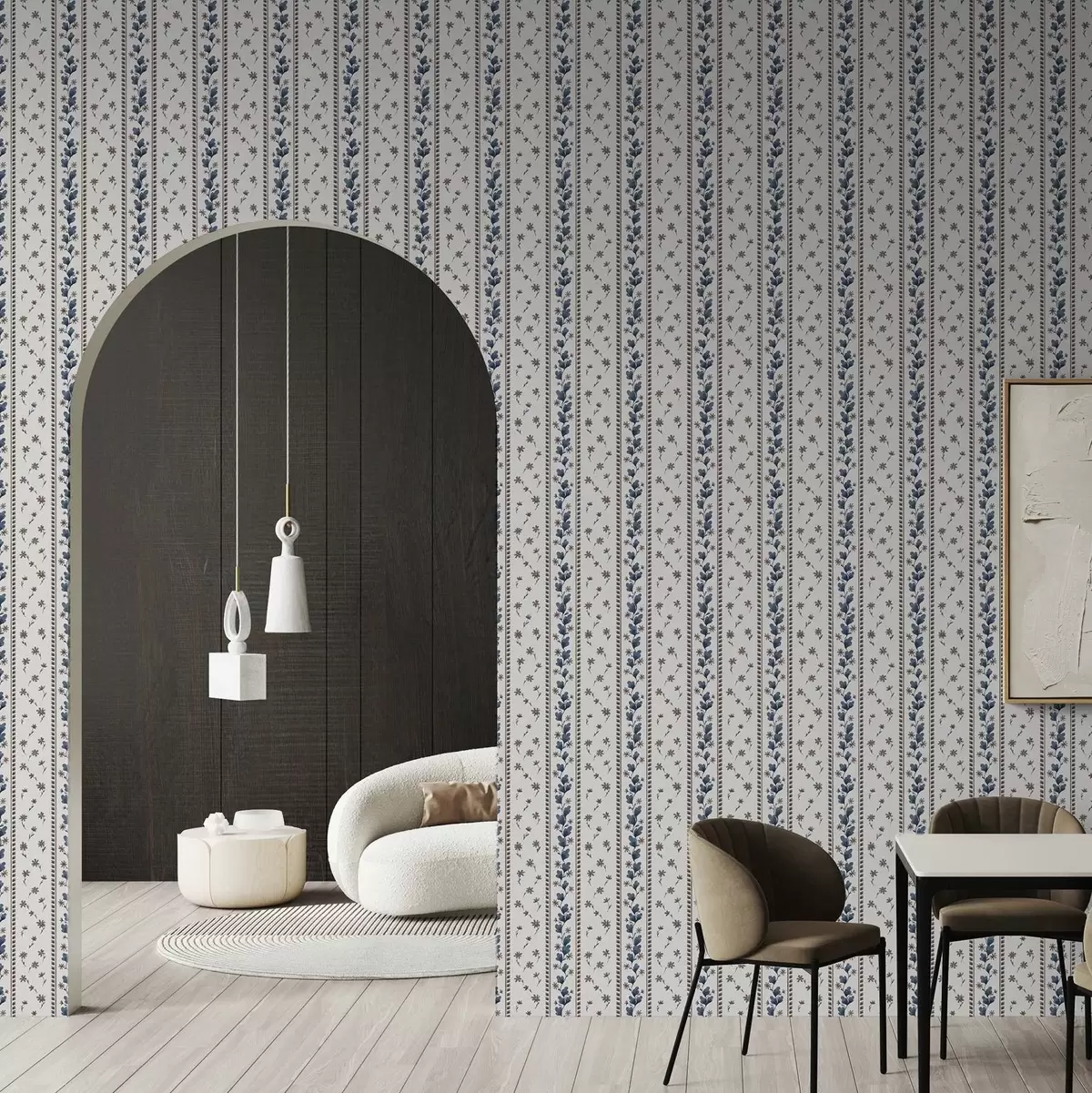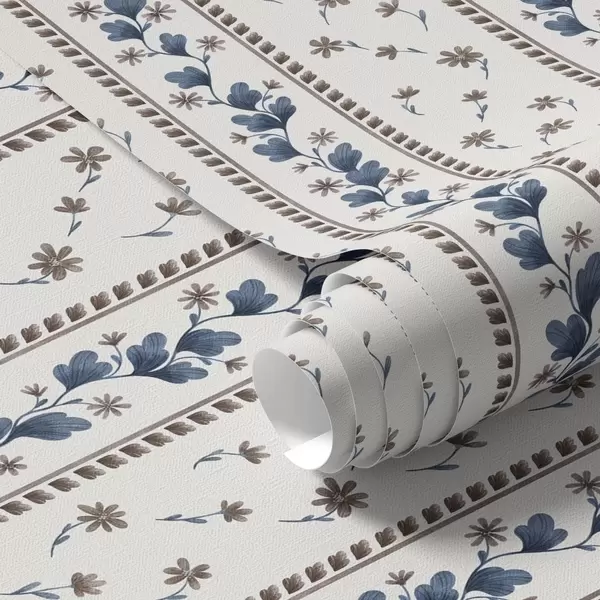 Papiers peints Rayures florales verticales dans les tons bleu-marron Nr. a00811v2