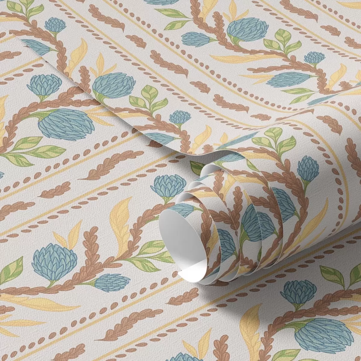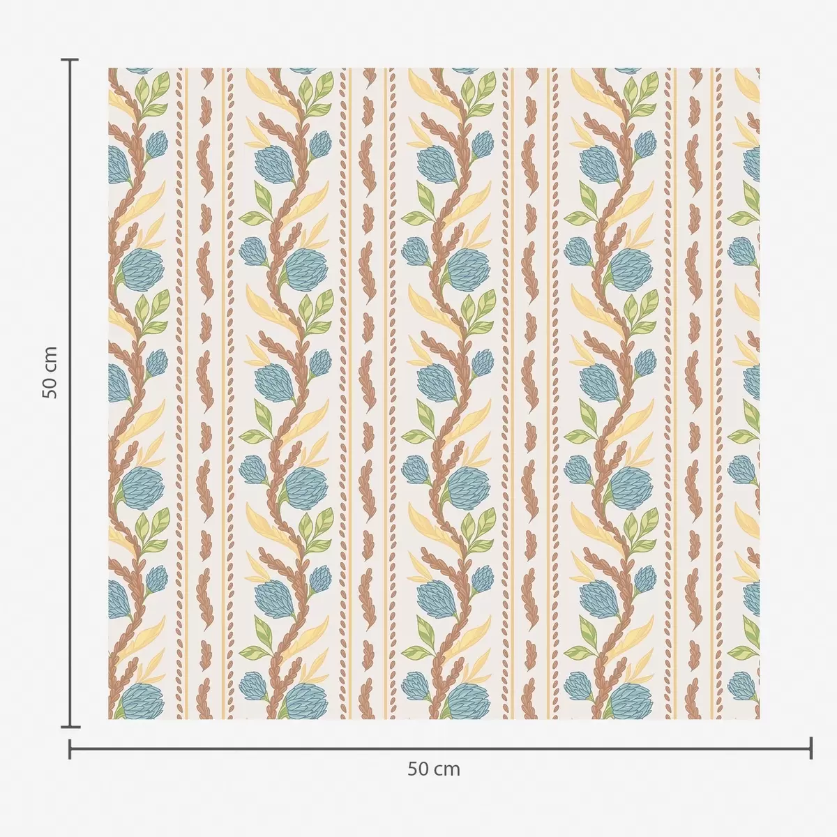 Papiers peints Rayures verticales en bouquet avec des fleurs bleues sur un fond chaud Nr. a00816v3