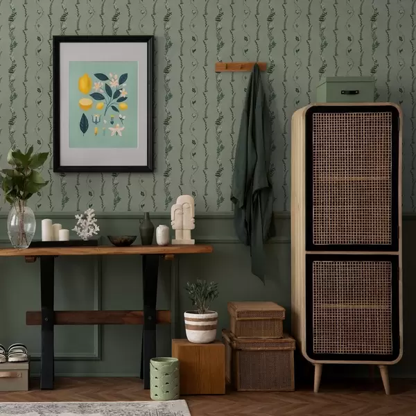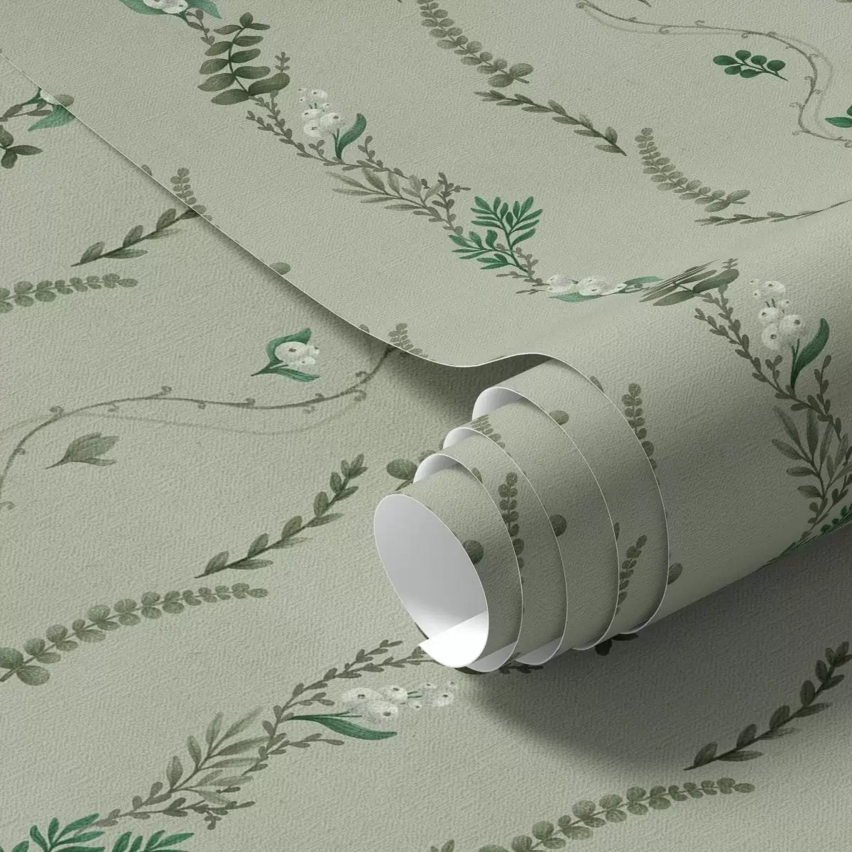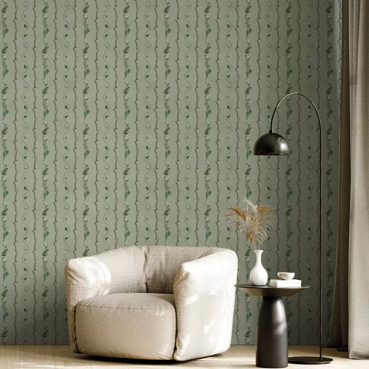 Papiers peints Vignes verticales et brins sur fond vert discret Nr. a00817v1