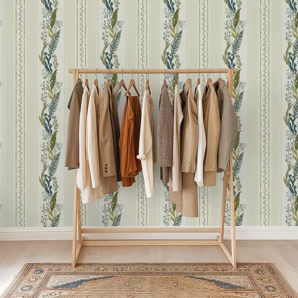 Papiers peints Larges rayures avec des branches picturales dans des tons bleu-olive Nr. a00825