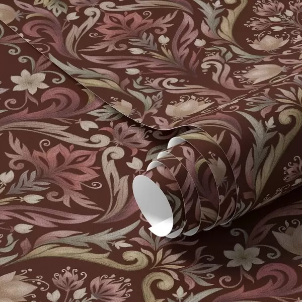 Papiers peints Ornement tulipe, fond bordeaux intense Nr. a00827v2